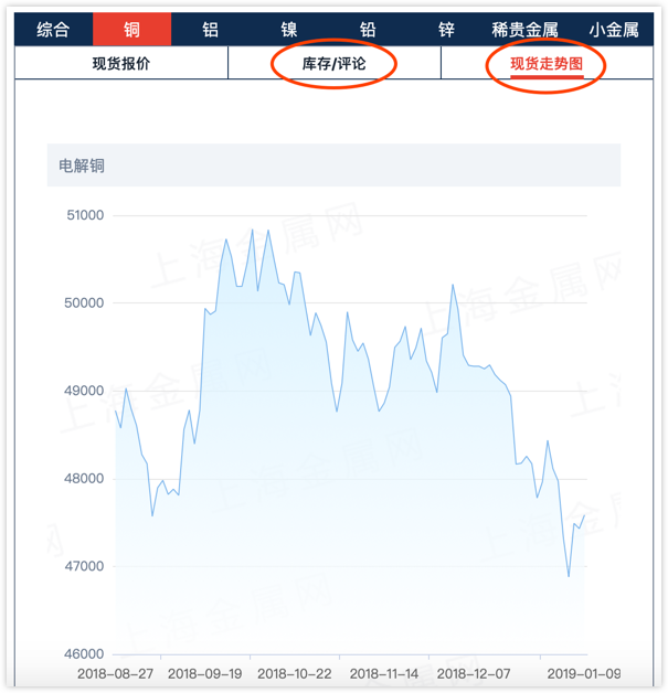 2)查看基本金属近半年的走势图,请点击网站首页现货报价单个品种专区,对应品种的现货走势图即可查询,此外还有相关品种的库存信息哦。